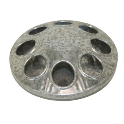Galvanized 8-hole feeder that is ideal for baby chicks. Rounded, embossed edges reduce chafing of neck and head. Feeds 6-10 chicks