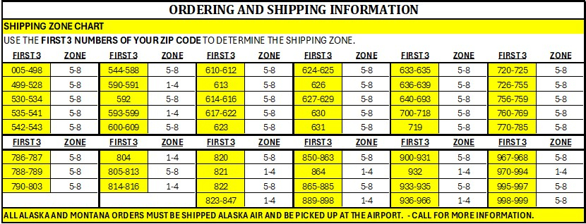 CLICK CHART ABOVE TO DETERMINE SHIPPING ZONE