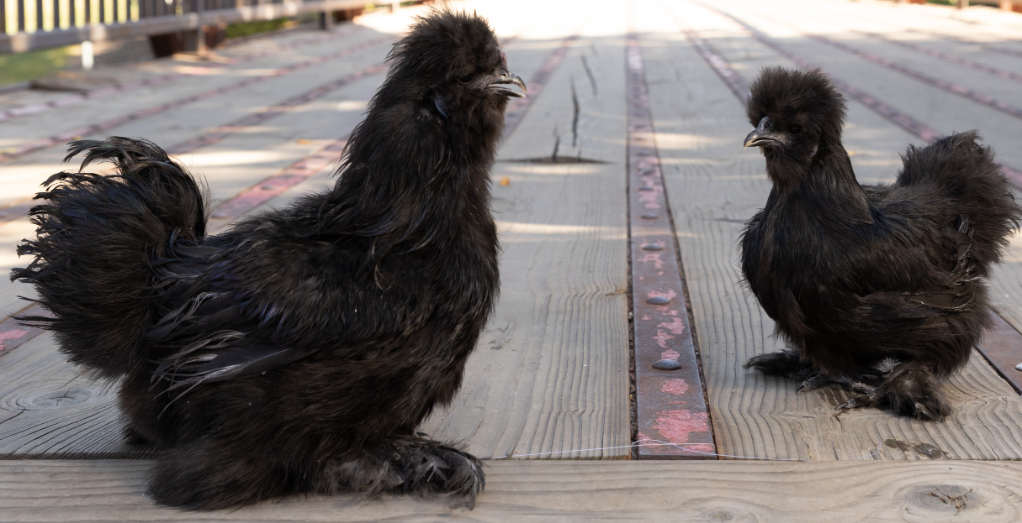 It is unknown when this bantam breed first appeared, but first written documentation was in 13th century China. Named after their “silk” like feathers the Silkie is one of America’s most popular backyard chickens. They are one of the most docile breeds known and make excellent broody mothers. They have many unique characteristics including black skin and bones, blue earlobes, walnut combs, as well as five toes. They are cold hardy, but prone to overheating in the hot months of summer. Most of our silkies are bearded, but it is a recessive gene that they may not be. Overall, the Silkie adds a distinct look to any flock. Chicks are black with feathered legs and a tuft on the head.