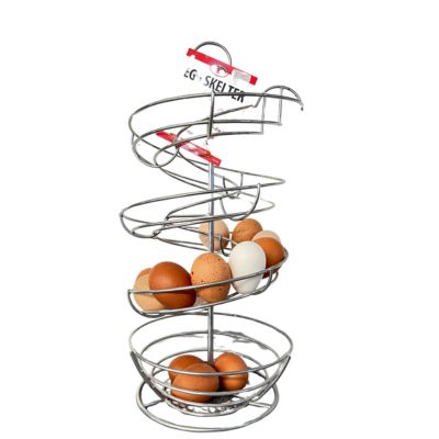 A heavy-duty stainless steel skelter to store and display farm fresh eggs at room temperature. Spiral design allows for first in, first out collection and usage. Holds up to 36 eggs. Not recommended for store bought eggs.